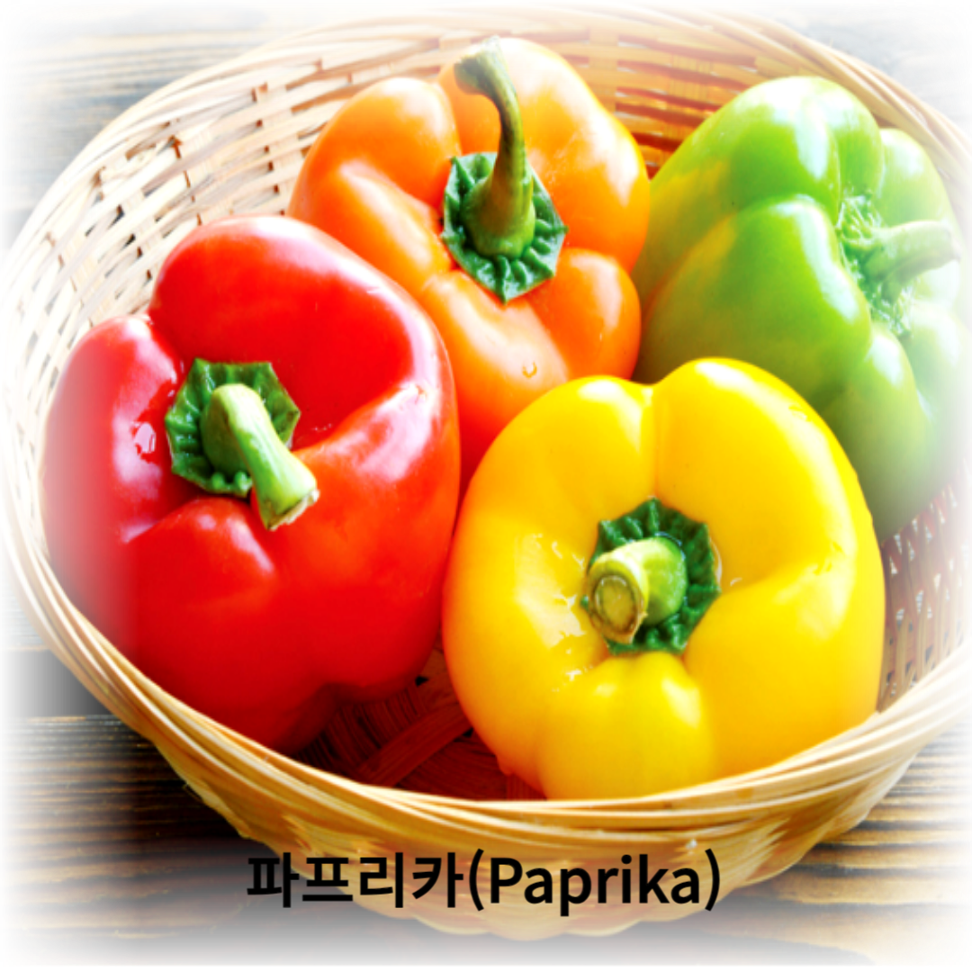 - 효능: 빨강 파프리카에는 면역 기능과 피부 건강을 돕는 비타민 C가 풍부합니다. 또한 신진대사를 개선하고 잠재적인 통증 완화 효과가 있는 캡사이신도 함유하고 있습니다.